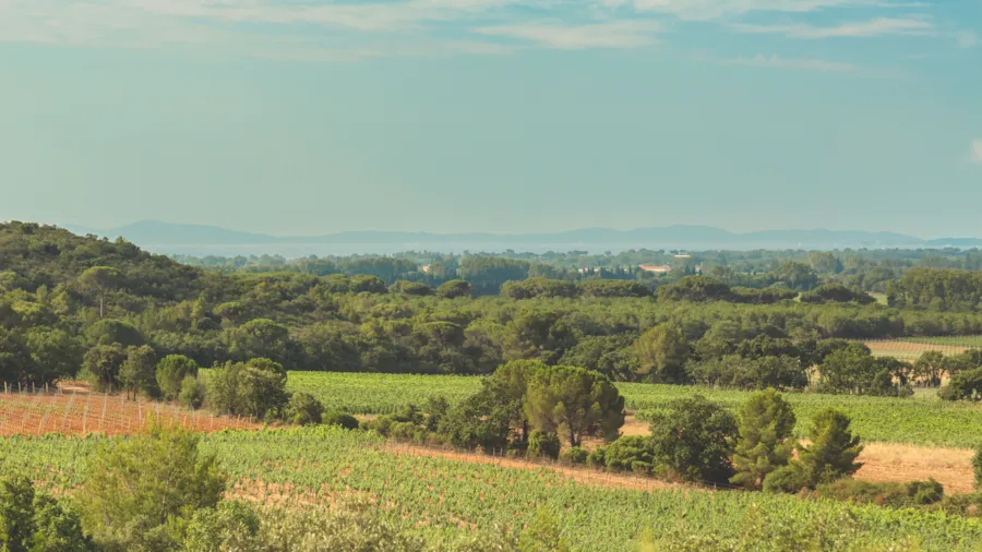 Enchâssé au milieu des collines boisées qui ceinturent le village de La Roquebrussanne, le domaine du Baguier vous invite à un véritable voyage sensoriel. Dès votre arrivée, vous êtes enveloppé par l’azur intense du ciel, se fondant à l’horizon dans le vert bleuté des collines provençales. Les vignes, parées de teintes changeantes au fil des saisons, oscillent entre le vert tendre du printemps et l’ocre flamboyant de l’automne. Les parfums de la garrigue embaument l’air, tandis que le chant des cigales rythme les journées estivales.